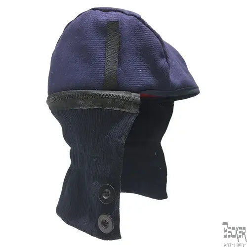Este forro para casco de seguridad azul marino, que llega hasta los hombros, está fabricado con dos capas de algodón y sarga y está equipado con un cálido forro polar azul. Cuenta con un cubrecuello de acrílico extraíble, correas de velcro y una tira reflectante en la parte posterior para mayor protección.