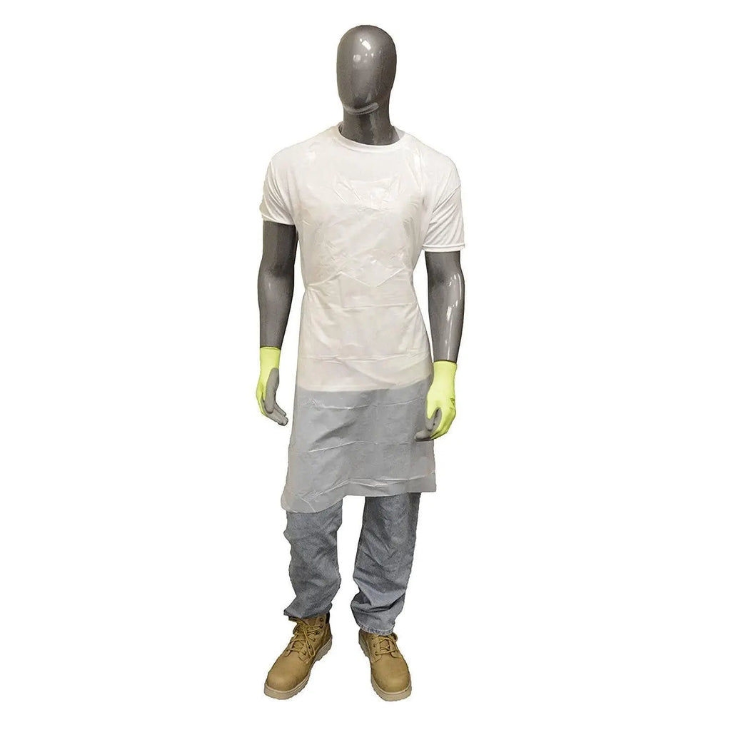 Material de calidad: el delantal protector está fabricado con polietileno de primera calidad. La construcción del material ofrece una excelente flexibilidad y resistencia al agua, productos químicos, aceites y grasas, así como a otras sustancias líquidas y secas.