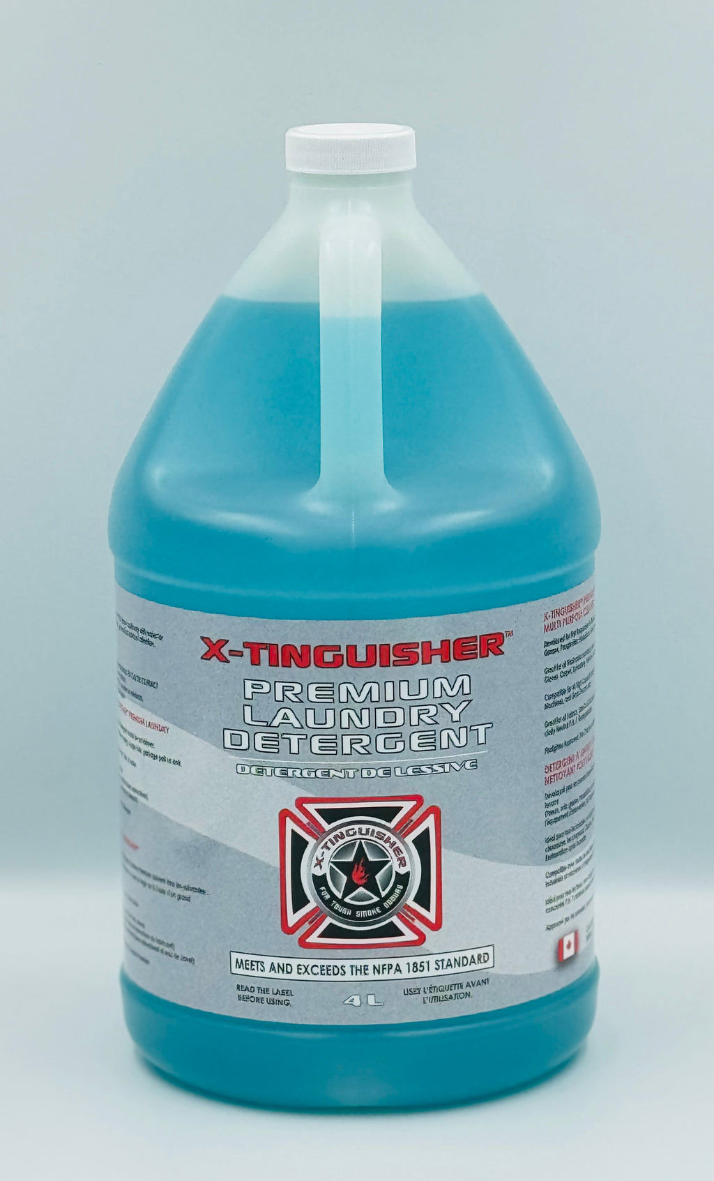 X-Tinguisher Premium Laundry Detergent is specifically engineered for the cleaning and decontamination needs of First Responders. From turnout gear and PPE to SCBA straps, boots, gloves, helmets, fire hoses, upholstery, rugs, vehicle interiors, and even fire restoration projects, this versatile liquid detergent tackles all washable fabrics with precision and care.