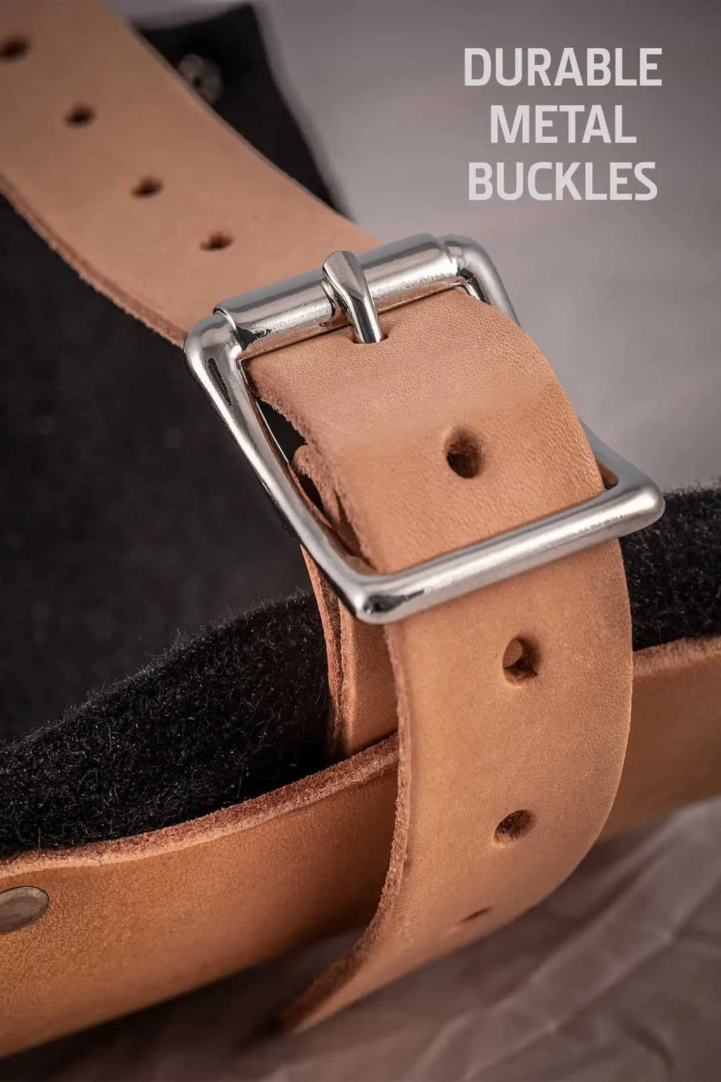 Wide Leather Strap: Designed for maximum comfort and a snug fit, keeping the knee pads securely in place.