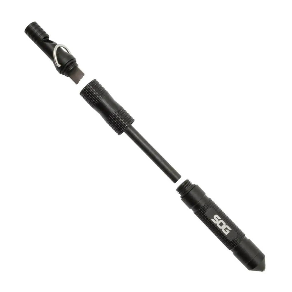 It's hard to find as many survival features in an item as one would in the Flint. The Flint packs enough survival and defensive components to get you through the night or away from danger. In a tool the size of a pencil, the Flint has a built-in fire starter, steel wool tinder compartment, carbide-tipped glass breaker, and safety whistle. Weighing in at less than an ounce and measuring 4.3-inches long, it's small enough to be carried on a lanyard, in a pocket, or in a pack. Wherever the destination is, it's always nice to have a backup plan. Tools: Fire Starter, Steel Wool Tinder Compartment, Carbide-Tipped Glass Breaker, Safety Whistle