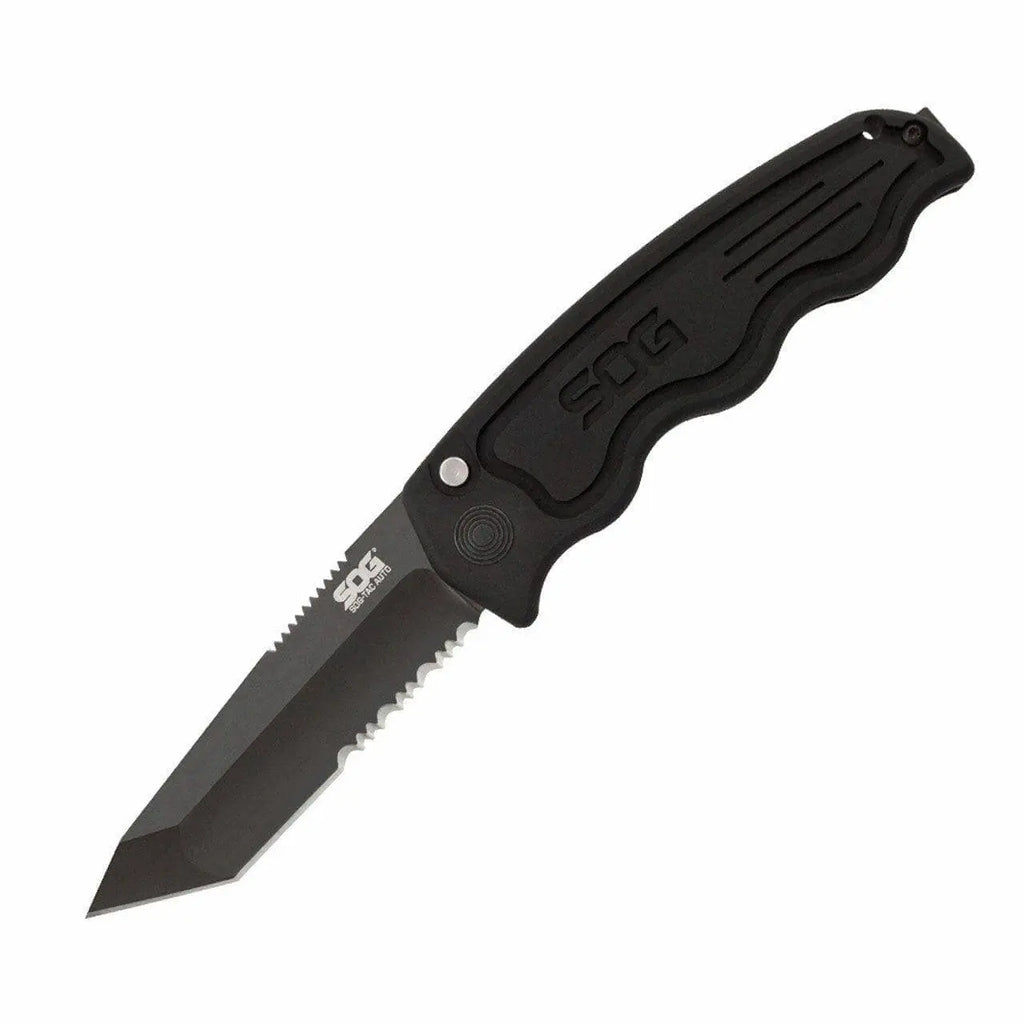 The original SOG automatic, SOG-TAC is trusted by LEOs across the country. Made from AUS-8 and 6061-T6 aluminum, SOG-TAC features a contured handle for maximum grip, making it ideal for self-defense. Durable and quick to open, SOG-TAC is a reliable automatic for the toughest of situations.