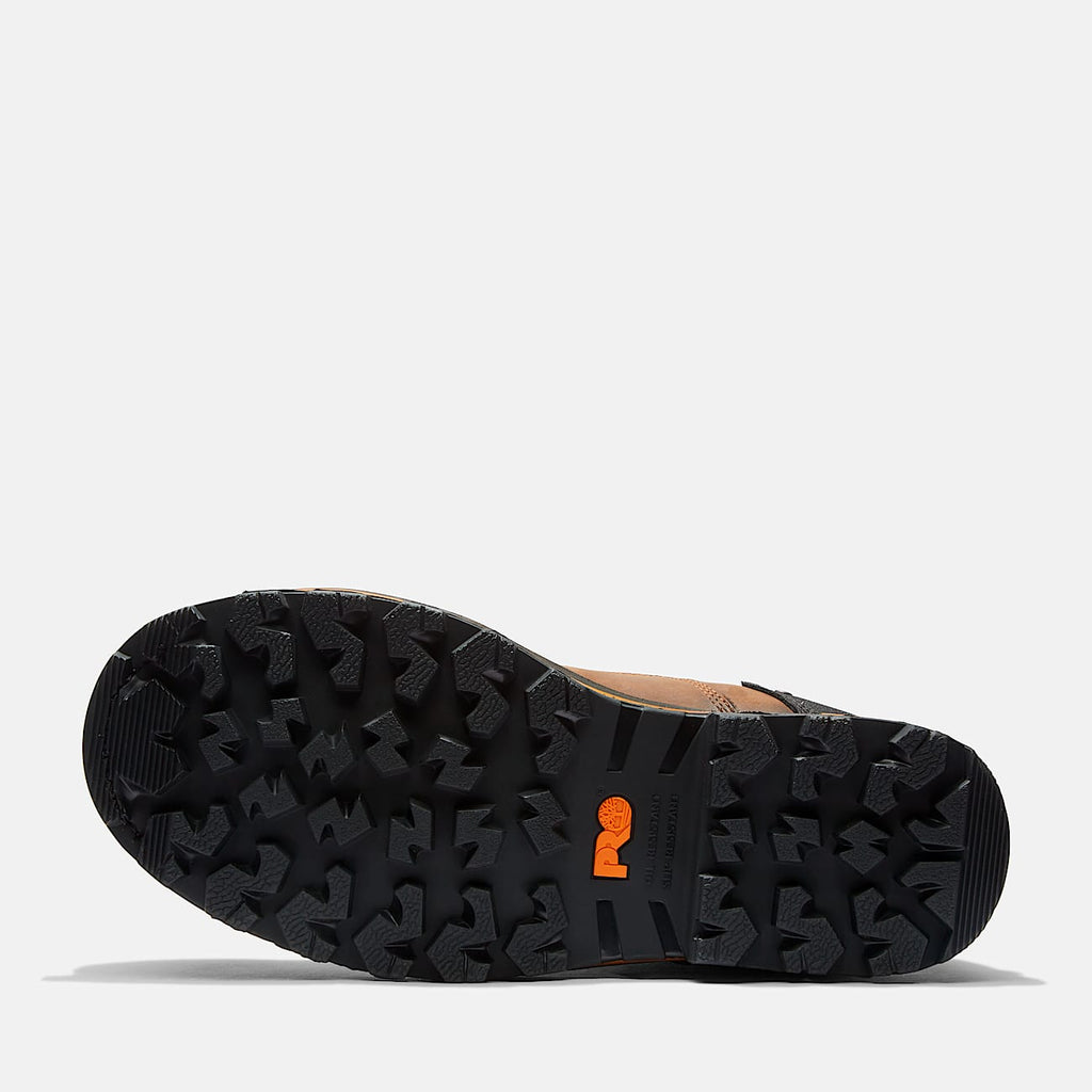 Starting with premium Timberland waterproof leather uppers, the design includes an internal waterproof, breathable membrane for maximum moisture protection and resistance to blood‑borne pathogens. A rugged, protective exterior toe area is complemented by molded Timberland PRO rubber toe protectors and a durable composite safety toe, providing a robust barrier against impact and compression without added weight.